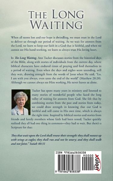 When all seems lost and our hope is dwindling, we must trust in the Lord to deliver us through our period of waiting. As we wait for answers from the Lord, we learn to keep our faith in a God that is faithful, and when we cannot see His hand working, we learn to always trust His loving heart. In The Long Waiting, Ann Tucker discusses stories from the historical days of the Bible, along with stories of individuals from the current day, where biblical characters have endured times of praying and find themselves in a period of waiting. Even when the days and nights seem unending, still they wait, drawing strength from the words of Jesus when He said, "Lo, I am with you always, even unto the end of the world" (Matthew 28:20). Although we cannot always see Him working, He never leaves us alone. Tucker has spent many years in ministry and listened to many stories of wonderful people who faced the long valley of waiting for answers from God. She felt that by combining stories from the past and stories from today, we could draw strength in knowing that our God is faithful and will come in His own time, which is always the right time. Inspired by biblical stories and stories from friends and family members whose faith had been tested, Tucker quickly realized they all had one thing in common-they had to wait. But there's a Scripture for that: They that wait upon the Lord shall renew their strength: they shall mount up with wings as eagles; they shall run and not be weary; and they shall walk and not faint." Isaiah 40:31