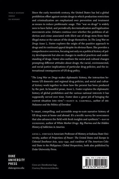 Since the early twentieth century, the United States has led a global prohibition effort against certain drugs in which production restriction and criminalization are emphasized over prevention and treatment as means to reduce problematic usage. This “war on drugs” is widely seen to have failed, and periodically decriminalization and legalization movements arise. Debates continue over whether the problems of addiction and crime associated with illicit use of drugs stem from their illegal status or the nature of the drugs themselves. In The Long War on Drugs Anne L. Foster explores the origin of the punitive approach to drugs and its continued appeal despite its obvious flaws. She provides a comprehensive overview, focusing not only on a political history of policy developments but also on changes in medical practices and understanding of drugs. Foster also outlines the social and cultural changes prompting different attitudes about drugs; the racial, environmental, and social justice implications of particular drug policies; and the international consequences of US drug policy.