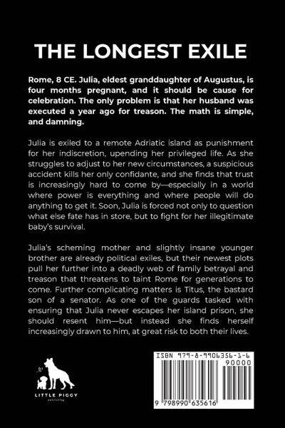 Rome, 8 CE. Julia, eldest granddaughter of Augustus, is four months pregnant, and it should be cause for celebration. The only problem is that her husband was executed a year ago for treason. The math is simple, and damning. Julia is exiled to a remote Adriatic island as punishment for her indiscretion, upending her privileged life. As she struggles to adjust to her new circumstances, a suspicious accident kills her only confidante, and she finds that trust is increasingly hard to come by-especially in a world where power is everything and where people will do anything to get it. Soon, Julia is forced not only to question what else fate has in store, but to fight for her illegitimate baby's survival. Julia's scheming mother and slightly insane younger brother are already political exiles, but their newest plots pull her further into a deadly web of family betrayal and treason that threatens to taint Rome for generations to come. Further complicating matters is Titus, the bastard son of a senator. As one of the guards tasked with ensuring that Julia never escapes her island prison, she should resent him-but instead she finds herself increasingly drawn to him, at great risk to both their lives.