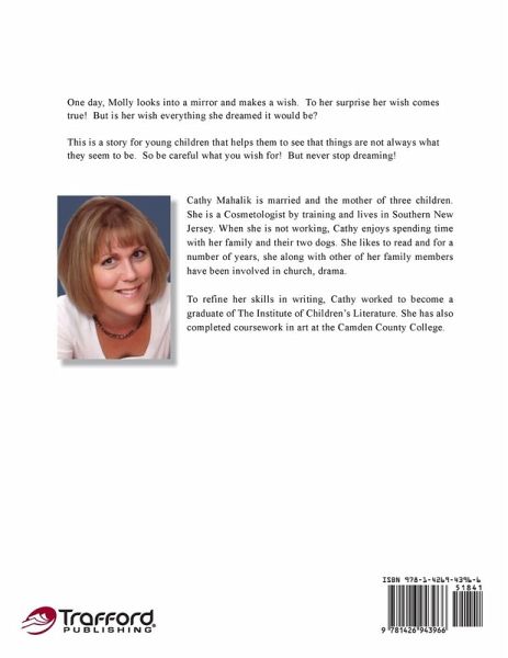 One day, Molly looks into a mirror and makes a wish. To her surprise her wish comes true! But is her wish everything she dreamed it would be? This is a story for young children that helps them to see that things are not always what they seem to be. So be careful what you wish for! But never stop dreaming!