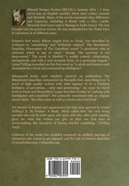 Edward Morgan Forster OM CH (1 January 1879 - 7 June 1970) was an English novelist, short story writer, essayist and librettist. Many of his novels examined class difference and hypocrisy, including A Room with a View (1908), Howards End (1910) and A Passage to India (1924). The last brought him his greatest success. He was nominated for the Nobel Prize in Literature in 16 different years. Forster's first novel, Where Angels Fear to Tread, was described by reviewers as "astonishing" and "brilliantly original". The Manchester Guardian (forerunner of The Guardian) noted "a persistent vein of cynicism which is apt to repel," though "the cynicism is not deep-seated." The novel is labelled "a sordid comedy culminating, unexpectedly and with a real dramatic force, in a grotesque tragedy." Lionel Trilling remarked on this first novel as "a whole and mature work dominated by a fresh and commanding intelligence". Subsequent books were similarly received on publication. The Manchester Guardian commented on Howards End, describing it as "a novel of high quality written with what appears to be a feminine brilliance of perception... witty and penetrating." An essay by David Cecil in Poets and Storytellers (1949) describes Forster as "pulsing with intelligence and sensibility", but primarily concerned with an original moral vision: "He tells a story as well as anyone who ever lived". US interest in Forster and appreciation for him were spurred by Lionel Trilling's E. M. Forster: A Study, which called him "the only living novelist who can be read again and again and who, after each reading, gives me what few writers can give us after our first days of novel-reading, the sensation of having learned something." (Trilling 1943) Criticism of his works has included comment on unlikely pairings of characters who marry or get engaged, and the lack of realistic depiction of sexual attraction. (wikipedia.org)