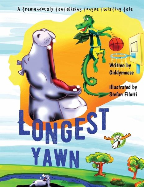 Hippo has chased everyone away from his water pool. Every day is calm and quiet, but now he is so bored he spends his days yawning. Little does he know, a number of fantastical things happen while hippo is yawing! But don’t yawn or you might miss them! Muddy maggots, clattering clams and a sick sheep race through this clever tale. Read aloud daily…if you dare. Wrap your tongue around the alluring alliteration and tantalizing tongue twisters in this wild, read aloud, illustrated story book. A brain-busting Giddymoose classic
