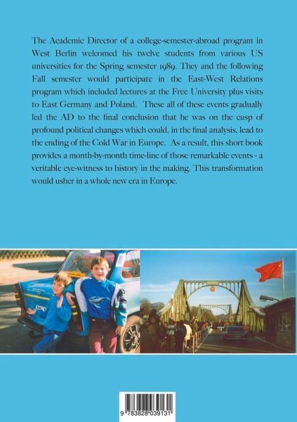 The Academic Director of a college-semester-abroad program in West Berlin welcomed his twelve students from various US universities for the Spring semester 1989. They and the following Fall semester would participate in the East-West Relations program which included lectures at the Free University plus visits to East Germany and Poland. These all of these events gradually led the AD to the final conclusion that he was on the cusp of profound political changes which could, in the final analysis, lead to the ending of the Cold War in Europe. As a result, this short book provides a month-by-month time-line of those remarkable events - a veritable eye-witness to history in the making. This transformation would usher in a whole new era in Europe.