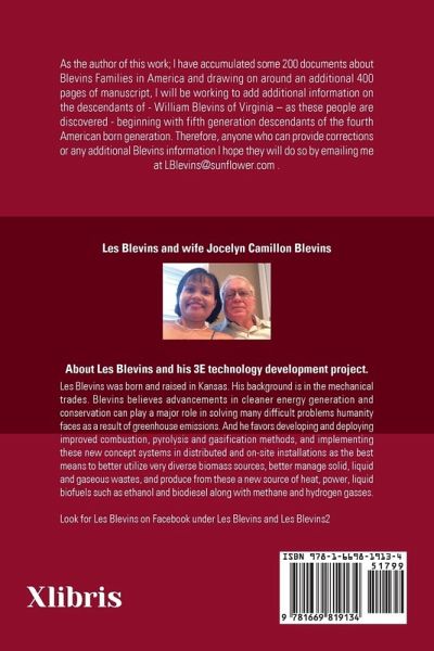 As the author of this work; I have accumulated some 200 documents about Blevins Families in America and drawing on around an additional 400 pages of manuscript, I will be working to add additional information on the descendants of - William Blevins of Virginia - as these people are discovered - beginning with fifth generation descendants of the fourth American born generation. Therefore, anyone who can provide corrections or any additional Blevins information I hope they will do so by emailing me at LBlevins@sunflower.com .