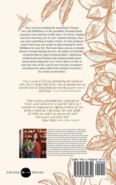 Have you been longing for something? Perhaps love, life fulfillment, or the possibility of motherhood consumes your mind on a daily basis. For Torrie, longing has been that deep, pit-in-your-stomach feeling, when you want something so badly it hurts. It's that profound desire that keeps you awake at night praying for God's fulfillment in your life. This book takes you on a relatable journey through longing for love, the battles of infertility, encountering the pain of miscarriages, embracing motherhood and finding God's immeasurable grace and promises along the way. Torrie shows us how to hear the voice of the Lord in our everyday encounters and grasp how impeccable God's timing is to perfect the results of our future.