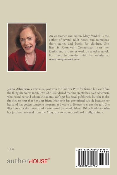 Jenna Albertsen, a writer, has just won the Pulitzer Prize for fiction but can't find the thing she wants most, love. She is saddened that her stepfather, Ned Albertsen, who raised her and whom she adores, can't get his novel published. But she is also shocked to hear that her dear friend Maribeth has committed suicide because her husband has gotten someone pregnant and wants a divorce to marry the girl. She flies home for the funeral and is comforted by her old friend, Brian Bradshaw, who has just been released from the Army, due to wounds suffered in Alghanistan.