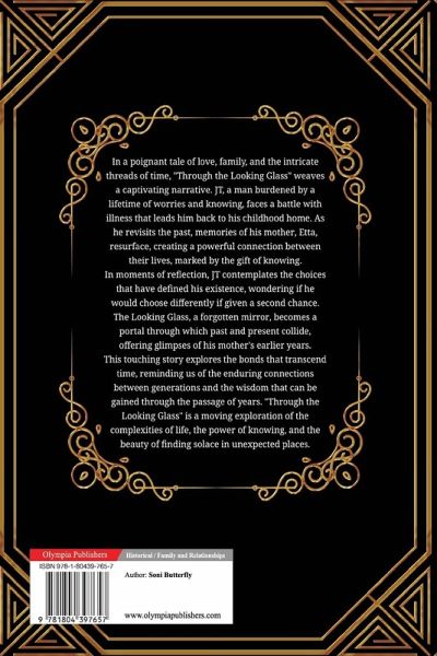 In a poignant tale of love, family, and the intricate threads of time, "Through the Looking Glass" weaves a captivating narrative. JT, a man burdened by a lifetime of worries and knowing, faces a battle with illness that leads him back to his childhood home. As he revisits the past, memories of his mother, Etta, resurface, creating a powerful connection between their lives, marked by the gift of knowing. In moments of reflection, JT contemplates the choices that have defined his existence, wondering if he would choose differently if given a second chance. The Looking Glass, a forgotten mirror, becomes a portal through which past and present collide, offering glimpses of his mother's earlier years. This touching story explores the bonds that transcend time, reminding us of the enduring connections between generations and the wisdom that can be gained through the passage of years. "Through the Looking Glass" is a moving exploration of the complexities of life, the power of knowing, and the beauty of finding solace in unexpected places.