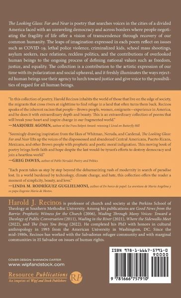 The Looking Glass: Far and Near is poetry that searches voices in the cities of a divided America faced with an unraveling democracy and across borders where people negotiating the fragility of life offer a vision of transcendence through recovery of our common humanity. The leaps of imagination expressed in each poem reflect on issues such as COVID-19, lethal police violence, criminalized kids, school mass shootings, asylum seekers, race relations, reckless politics, and the contributions of overlooked human beings to the ongoing process of defining national values such as freedom, justice, and equality. The collection is a contribution to the artistic expression of our time with its polarization and social upheaval, and it freshly illuminates the ways rejected human beings use their agency to lurch toward justice and give voice to the possibilities of regard for all human beings.