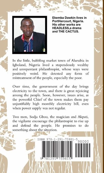This book is a work of fiction set in a rural and rapidly evolving market town,east of the Niger,Nigeria.It depicts the typical rural life with pre-existing social life,security and justice systems,economy,traditional government and social order deep in Igboland in the 70s when western influence was still relatively very low in some areas around there.