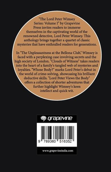 "The Lord Peter Wimsey Series: Volume I" by Grapevine Press invites readers to immerse themselves in the captivating world of the renowned detective, Lord Peter Wimsey. This anthology brings together a quartet of classic mysteries that have enthralled readers for generations. In "The Unpleasantness at the Bellona Club," Wimsey is faced with a perplexing case involving secrets and the high society of London. "Clouds of Witness" takes readers into the heart of a family's tangled web of mysteries and loyalties. "Whose Body?" marks Lord Peter's debut in the world of crime-solving, showcasing his brilliant deductive skills. "Lord Peter Views the Body" offers a collection of shorter adventures that further highlight Wimsey's keen intellect and quick wit.