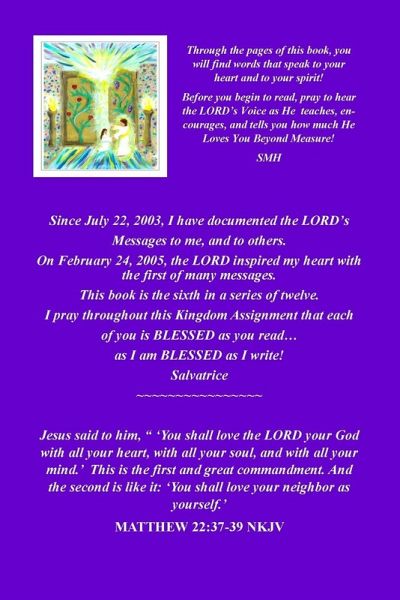 Through the pages of this book, you will find words that speak to your heart and to your spirit! Before you begin, pray to hear the LORD's Voice, as He teaches, encourages, and tells you how much He Loves You Beyond Measure!