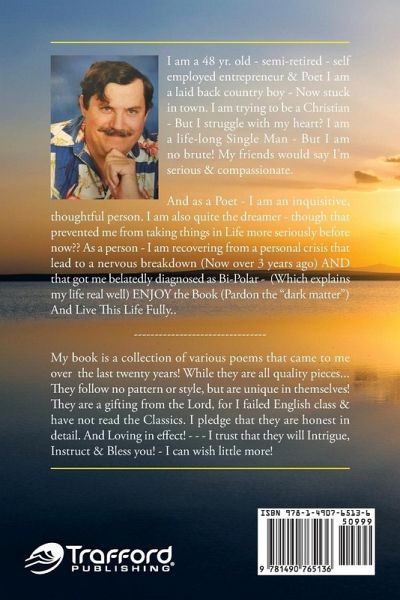 My book is a collection of various poems that came to me over the last twenty years! While they are all quality pieces... They follow no pattern or style, but are unique in themselves! They are a gifting from the Lord, for I failed English class & have not read the Classics. I pledge that they are honest in detail. And Loving in effect! - - - I trust that they will Intrigue, Instruct & Bless you! - I can wish little more!