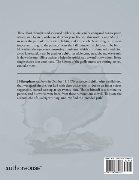 These short thoughts and seasoned biblical quotes can be compared to true pearl, which, step by step, wishes to show for your free will this world¿s way. Many of us walk the path of expectation, habits, and misbeliefs. Nurturing is the most important thing, so the parents' heart shall illuminate the children to be born. Nowadays, the egocentric nurturing dominates, which drifts humanity and God away. Like tassel, it can be used for a child, an adolescent, an adult, and wise souls. It shows the ego-killing basis and helps the spirit's way toward true wisdom. Every single choice is in your hand. The flowers of the godly mercy are waiting, so you can take them.