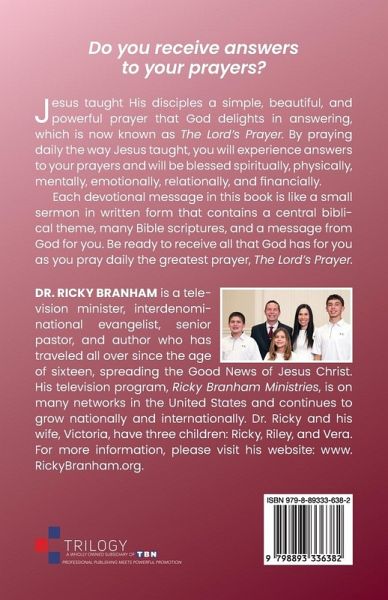 Do you receive answers to your prayers? Jesus taught His disciples a simple, beautiful, and powerful prayer that God delights in answering, which is now known as The Lord's Prayer. By praying daily the way Jesus taught, you will experience answers to your prayers and will be blessed spiritually, physically, mentally, emotionally, relationally, and financially. Each devotional message in this book is like a small sermon in written form that contains a central bibli- cal theme, many Bible scriptures, and a message from God for you. Be ready to receive all that God has for you as you pray daily the greatest prayer, The Lord's Prayer.