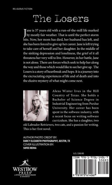 Jane is 37 years old with a run-of-the-mill life marked by mostly fair weather. That is until the perfect storm hits. Now, her mom has died, her husband has left, and she has been forced to give up her career. Jane is left trying to take care of herself and her daughter. In the middle of the sinking depression and loneliness, the grief of it all threatens her very will to live. However, in her battle, Jane is not alone. There are forces which seek to help her along the way and those which would like to see her give up. The Losers is a story of heartbreak and hope. It is a journey into the excruciating experiences of life and of death and into the elusive mystery of what might come next.