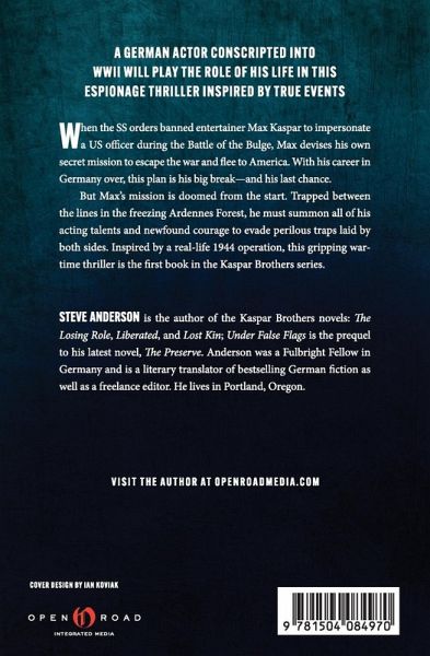 A German actor conscripted into WWII will play the role of his life as he makes a daring escape in this espionage thriller inspired by true events. When the SS orders banned entertainer Max Kaspar to impersonate a US officer during the Battle of the Bulge, Max devises his own secret mission to escape the war and flee to America. With his career in Germany over, this plan is his big break--and his last chance. But Max's mission is doomed from the start. Trapped between the lines in the freezing Ardennes Forest, he must summon all of his acting talents and newfound courage to evade perilous traps laid by both sides. Inspired by a real-life 1944 operation, this gripping wartime thriller is the first book in the Kaspar Brothers series.