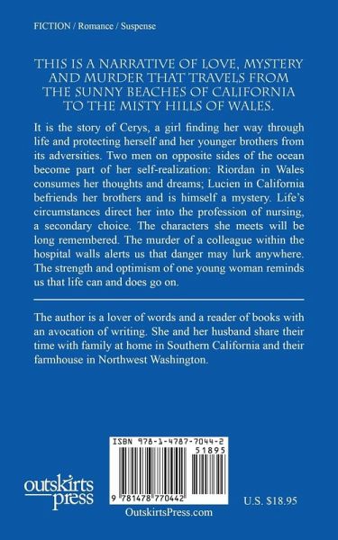 "The Loss of Our Not knowing" is a narrative of Love, Mystery and Murder! It travels from the sunny beaches of California to the misty hills of Wales and back again. It is the story of Cerys: 'Keri', a young woman finding her way through life and protecting herself and her two younger brothers from its adversities. Two men on either side of the ocean play a part in her self-realization. Riordan, 'Rory', in Wales consumes her thoughts and dreams. Lucien, 'Luke' in California befriends her brothers and is himself a mystery. Her career path, a second choice, leads her to the profession of Nursing. Cerys comes to believe that she has been led there by more than just happenstance. The murder of a respected colleague within the hospital walls alerts us that danger may lurk anywhere. The resilience and optimism of one young woman reminds us that life can and does go on. This is a work of fiction with elements of fact and memorable characters. It is told in the author's conversational and often poetic style.