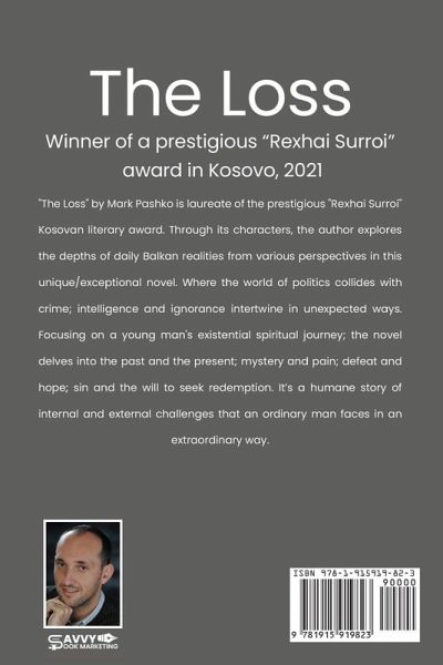 The Loss" by Mark Pashko is laureate of the prestigious "Rexhai Surroi" Kosovan literary award. Through its characters, the author explores the depths of daily Balkan realities from various perspectives in this unique/exceptional novel. Where the world of politics collides with crime; intelligence and ignorance intertwine in unexpected ways. Focusing on a young man's existential spiritual journey; the novel delves into the past and the present; mystery and pain; defeat and hope; sin and the will to seek redemption. It's a humane story of internal and external challenges that an ordinary man faces in an extraordinary way.