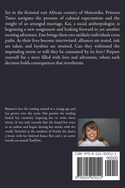 Set in the fictional east African country of Mononiko, Princess Tumo navigates the pressure of cultural expectations and the weight of an arranged marriage. Kai, a social anthropologist, is beginning a new assignment and looking forward to yet another exciting adventure. Fate brings these two unlikely individuals cross paths. As their lives become intertwined, alliances are tested, risk are taken, and loyalties are strained. Can they withstand the impending storm or will they be consumed by its fury? Prepare yourself for a story filled with love and adventure, where each decision holds consequences that reverberate.