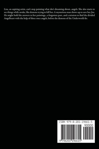 Lisa, an aspiring artist, can't stop painting what she's dreaming about...angels. She also starts to see things while awake, like demons trying to kill her. A mysterious man shows up to save her. Joe. He might hold the answers to her paintings...a forgotten past...and a mission to find the divided Angelheart with the help of three once angels, before the demons of the Underworld do.