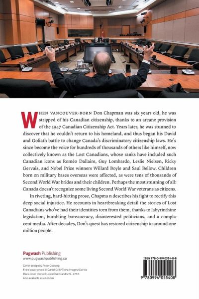 When Vancouver-born Don Chapman was six years old, he was stripped of his Canadian citizenship, thanks to an arcane provision of the 1947 Canadian Citizenship Act. Years later, he was stunned to discover that he couldn't return to his homeland, and thus began his David and Goliath battle to change Canada's discriminatory citizenship laws. He's since become the voice for hundreds of thousands of others like himself, now collectively known as the Lost Canadians, whose ranks have included such Canadian icons as Roméo Dallaire, Guy Lombardo, Leslie Nielsen, Ricky Gervais, and Nobel Prize winners Willard Boyle and Saul Bellow. Children born on military bases overseas were affected, as were tens of thousands of Second World War brides and their children. Perhaps the most stunning of all: Canada doesn't recognize some living Second World War veterans as citizens. In riveting, hard-hitting prose, Chapman describes his fight to rectify this deep social injustice. He renders in heartbreaking detail the stories of Lost Canadians who've had their identities torn from them, thanks to labyrinthine legislation, bumbling bureaucracy, disinterested politicians, and a complacent media. After decades, Don's quest has restored citizenship to around one million people. DON CHAPMAN was born in Vancouver, B.C., but lost his Canadian citizenship ¿as a six-year-old. He's been fighting the government ever since, becoming the face of the Canadian citizenship rights movement. He coined the phrase "Lost Canadians" that is now used widely to describe other Canadians in his position. He has testified several times before both the House and Senate, and has been interviewed by major media outlets around the world, including CBC television and radio, CTV, Maclean's, the National Post, the BBC, Le Monde, The Economist, Reader's Digest, the Wall Street Journal, and the Aboriginal Peoples Television Network. He's also spoken at various universities and organizations worldwide. Chapman is a United Airlines pilot, currently on leave. He blogs at www.lostcanadian.com.