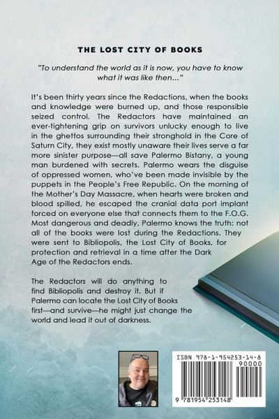 New Adult Novel: "To understand the world as it is now, you have to know what it was like then..." It's been thirty years since the Redactions, when the books and knowledge were burned up, and those responsible seized control. Since, the Redactors have maintained an ever-tightening grip on the survivors unlucky enough to live in the ghettos surrounding their stronghold in the Core of Saturn City and who exist mostly unaware that their lives serve a far more sinister purpose-all save Palermo Bistany, a young man burdened with secrets. Palermo wears the disguise of oppressed women, who've been made invisible by the puppets in the People's Free Republic. On the morning of the Mother's Day Massacre when hearts were broken and blood spilled, he escaped the cranial data port implant forced on everyone else that connects them to the Grey F.O.G. Most dangerous and deadly, Palermo knows the truth: not all of the books were lost during the Redactions. They were sent to Bibliopolis, the Lost City of Books, for protection and retrieval in a time after the Dark Age of the Redactors ends. The Redactors will do anything to find Bibliopolis and destroy it. But if Palermo can locate the Lost City of Books first-and survive-he might just change the world and lead it out of darkness.