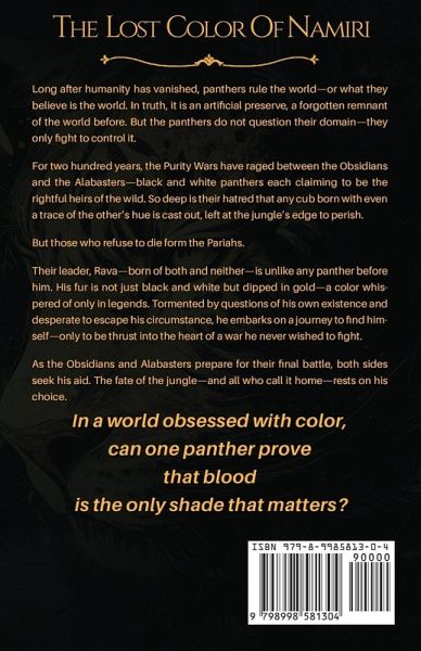 2025 Winner of the Firebird International Book Award In a world obsessed with color, can one outcast prove that blood is the only shade that matters? In a post-human world where panther tribes rule and color decides fate, any cub born of mixed blood is left for dead. But the jungle keeps its own counsel. The Pariahs-a tribe of the discarded-rescue the unwanted and claim them as their own. Raza leads them, yet his golden coat sets him even further apart in a society that sees only black and white. It is the mark of something ancient and unknown, a challenge to the order that shaped him. His every choice now balances between protecting his people and proving the system a lie. As tribal war brews and the old order begins to crack, Raza must face the truth of who he is and decide if he will serve the laws that reject him-or transcend them. The Lost Color of Namiri is an award-winning dark fantasy and animal allegory perfect for fans of The Gilded Ones, Midnight Robber, and My Soul to Keep.