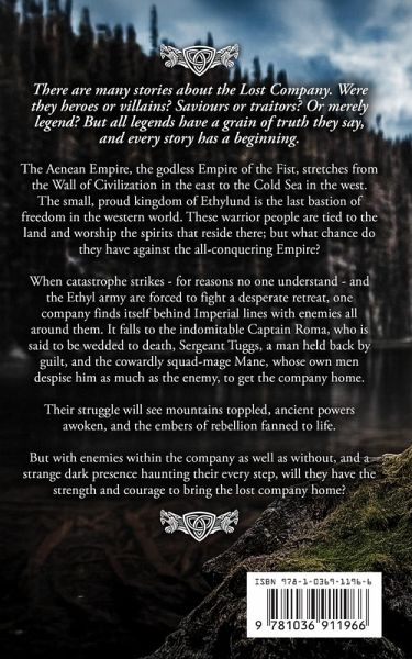 There are many stories about the Lost Company. Were they heroes or villains? Saviours or traitors? Or merely legend. But all legends have a grain of truth they say, and all stories have a beginning. The Aenean Empire, the godless Empire of the Fist, stretches from the Wall of Civilization in the east to the Cold Sea in the west. The small, proud kingdom of Ethylund is the last bastion of freedom in the western world. These warrior people are tied to the land and worship the spirits that reside there; but what chance do they have against the all-conquering Empire? Yet hope remains. Led by the legendary swordsman Harold Hadrin and the fearsome Captain Roma, the Ethyl have won a historic victory against the Aeneans, sending shockwaves across the land and spelling a change in the war. But when catastrophe strikes - for reasons no one understands - and the Ethyl army are forced to fight a desperate retreat, one company finds itself behind Imperial lines with enemies all around them. It falls to the indomitable Captain Roma, who is said to be wedded to death, Sergeant Tuggs, a man held back by guilt, and the cowardly squad-mage Mane, whose own men despise him as much as the enemy, to get the company home. Their struggle will see mountains toppled, ancient powers awoken, and the embers of rebellion fanned to life. But with enemies within the company as well as without, and a strange dark presence haunting their every step, will they have the strength and courage to bring the lost company home? The Lost Company is a heroic fantasy novel, inspired by the Roman-Britannia era of history. It is a character driven story, with strong male and female protagonists, villains you love to hate, and satisfying character arcs. The plot follows the struggles of the main cast as they must find their way home through a perilous land. This, set against the backdrop of a land rich in lore that makes it feel real and lived in. Fans of Robin Hobb, Joe Abercrombie, John Gwynne and David Gemmell will find a lot to like in this novel.