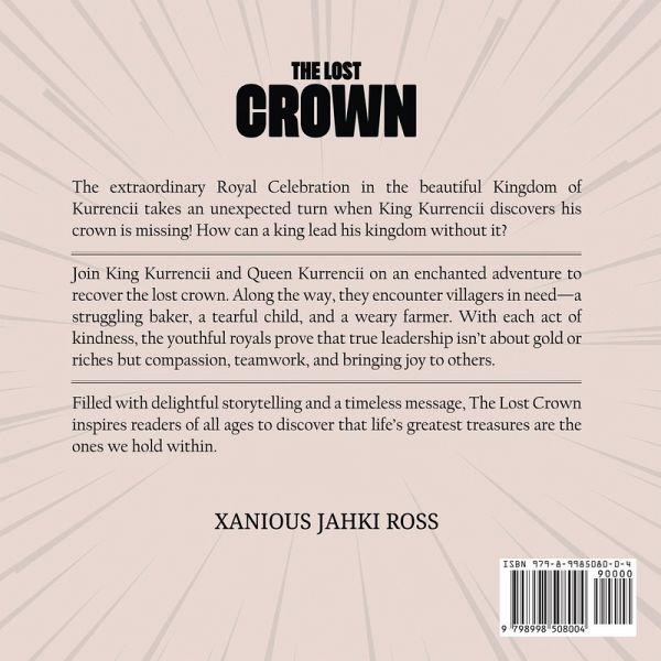 The Lost Crown: A Kurrencii Royal Adventure King Kurrencii and Queen Kurrencii are preparing for the grandest celebration the Kurrencii Kingdom has ever seen-until disaster strikes. Just as the festivities are about to begin, King Kurrencii's crown mysteriously disappears! Determined to find it, the young rulers embark on a thrilling journey through their kingdom. Along the way, they encounter villagers in need-a child searching for a lost puppy, a baker with a ruined cake, and more. Though time is short, King and Queen Kurrencii choose to help at every turn, using kindness, perseverance, and teamwork to solve each problem. Their adventure leads to an unexpected discovery-As the celebration finally begins, the rulers learn an important lesson: true leadership isn't about wearing a crown, but about serving others with a generous heart. Filled with vibrant storytelling and uplifting themes of friendship, problem-solving, and compassion, The Lost Crown is a heartwarming tale that will inspire young readers to lead with kindness. Perfect for ages 0-12, this beautifully illustrated book is a must-have for any child's bookshelf!