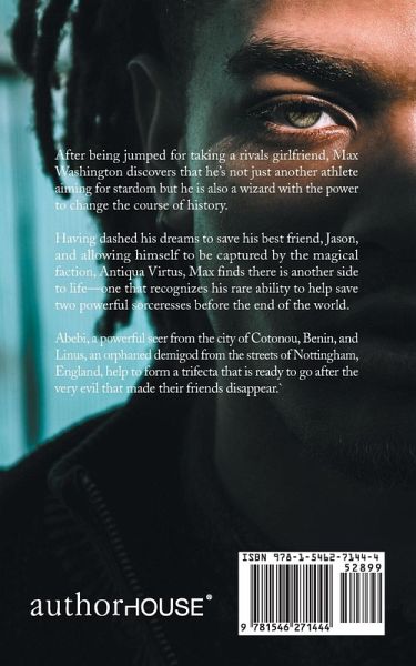 After being jumped for taking a rivals girlfriend, Max Washington discovers that he's not just another athlete aiming for stardom but he is also a wizard with the power to change the course of history. Having dashed his dreams to save his best friend, Jason, and allowing himself to be captured by the magical faction, Antiqua Virtus, Max finds there is another side to life-one that recognizes his rare ability to help save two powerful sorceresses before the end of the world. Abebi, a powerful seer from the city of Cotonou, Benin, and Linus, an orphaned demigod from the streets of Nottingham, England, help to form a trifecta that is ready to go after the very evil that made their friends disappear.`