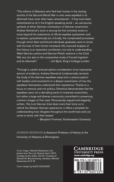 A fifth of West Germany's post-1945 population consisted of ethnic German refugees expelled from Eastern Europe, a quarter of whom came from Silesia. As the richest territory lost inside Germany's interwar borders, Silesia was a leading objective for territorial revisionists, many of whom were themselves expellees. The Lost German East examines how and why millions of Silesian expellees came to terms with the loss of their homeland. Applying theories of memory and nostalgia, as well as recent studies on ethnic cleansing, Andrew Demshuk shows how, over time, most expellees came to recognize that the idealized world they mourned no longer existed. Revising the traditional view that most of those expelled sought a restoration of prewar borders so they could return to the east, Demshuk offers a new answer to the question of why, after decades of violent upheaval, peace and stability took root in West Germany during the tense early years of the Cold War.