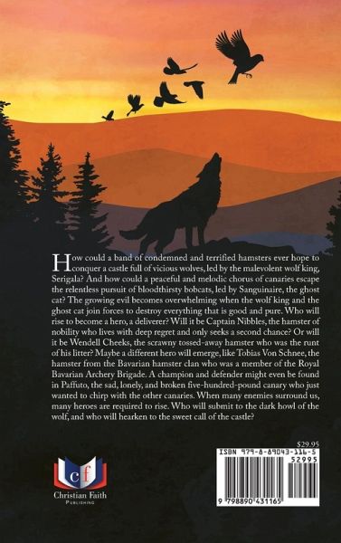 How could a band of condemned and terrified hamsters ever hope to conquer a castle full of vicious wolves, led by the malevolent wolf king, Serigala? And how could a peaceful and melodic chorus of canaries escape the relentless pursuit of bloodthirsty bobcats, led by Sanguinaire, the ghost cat? The growing evil becomes overwhelming when the wolf king and the ghost cat join forces to destroy everything that is good and pure. Who will rise to become a hero, a deliverer? Will it be Captain Nibbles, the hamster of nobility who lives with deep regret and only seeks a second chance? Or will it be Wendell Cheeks, the scrawny tossed-away hamster who was the runt of his litter? Maybe a different hero will emerge, like Tobias Von Schnee, the hamster from the Bavarian hamster clan who was a member of the Royal Bavarian Archery Brigade. A champion and defender might even be found in Paffuto, the sad, lonely, and broken five-hundred-pound canary who just wanted to chirp with the other canaries. When many enemies surround us, many heroes are required to rise. Who will submit to the dark howl of the wolf, and who will hearken to the sweet call of the castle?