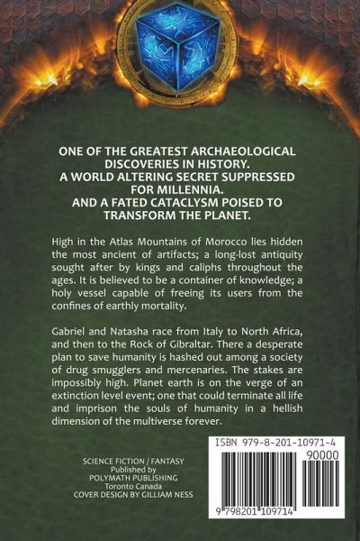 One of the greatest archaeological discoveries in history. A world altering secret suppressed for millennia. A fated cataclysm poised to transform the planet. High in the Atlas Mountains of Morocco lies hidden the most ancient of artifacts; a long-lost antiquity sought after by kings and caliphs throughout the ages. It is believed to be a container of knowledge; a holy vessel capable of freeing its users from the confines of earthly mortality. In this fast-paced second volume, Gabriel and Natasha race from Italy to North Africa, and then to the Rock of Gibraltar. There a desperate plan to save humanity is hashed out among a society of drug smugglers and mercenaries. The stakes are impossibly high. Planet earth is on the verge of an extinction level event; one that could terminate all life and imprison the souls of humanity in a hellish dimension of the multiverse forever.