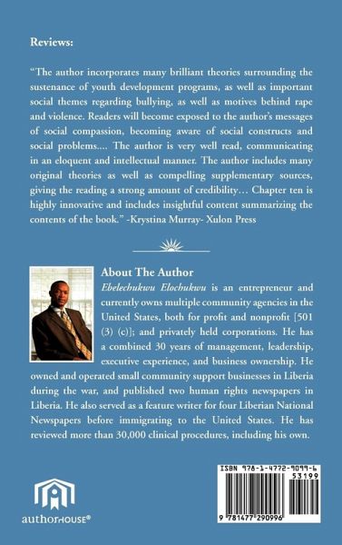 Reviews: "The author incorporates many brilliant theories surrounding the sustenance of youth development programs, as well as important social themes regarding bullying, as well as motives behind rape and violence. Readers will become exposed to the author's messages of social compassion, becoming aware of social constructs and social problems.... The author is very well read, communicating in an eloquent and intellectual manner. The author includes many original theories as well as compelling supplementary sources, giving the reading a strong amount of credibility... Chapter ten is highly innovative and includes insightful content summarizing the contents of the book." -Krystina Murray- Xulon Press