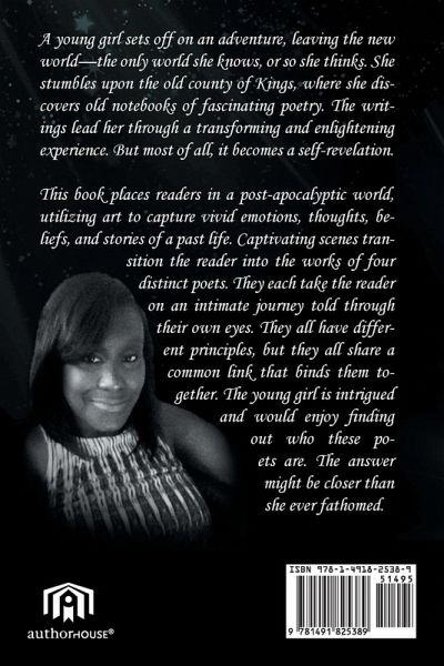 A young girl sets off on an adventure, leaving the new world-the only world she knows, or so she thinks. She stumbles upon the old county of Kings, where she discovers old notebooks of fascinating poetry. The writings lead her through a transforming and enlightening experience. But most of all, it becomes a self-revelation. This book places readers in a post-apocalyptic world, utilizing art to capture vivid emotions, thoughts, beliefs, and stories of a past life. Captivating scenes transition the reader into the works of four distinct poets. They each take the reader on an intimate journey told through their own eyes. They all have different principles, but they all share a common link that binds them together. The young girl is intrigued and would enjoy finding out who these poets are. The answer might be closer than she ever fathomed.