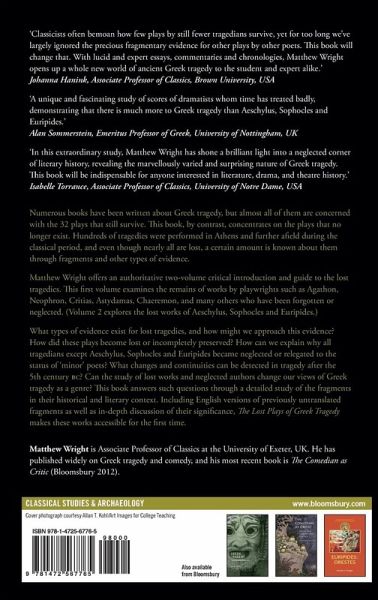Numerous books have been written about Greek tragedy, but almost all of them are concerned with the 32 plays that still survive. This book, by contrast, concentrates on the plays that no longer exist. Hundreds of tragedies were performed in Athens and further afield during the classical period, and even though nearly all are lost, a certain amount is known about them through fragments and other types of evidence. Matthew Wright offers an authoritative two-volume critical introduction and guide to the lost tragedies. This first volume examines the remains of works by playwrights such as Phrynichus, Agathon, Neophron, Critias, Astydamas, Chaeremon, and many others who have been forgotten or neglected. (Volume 2 explores the lost works of Aeschylus, Sophocles and Euripides.) What types of evidence exist for lost tragedies, and how might we approach this evidence? How did these plays become lost or incompletely preserved? How can we explain why all tragedians except Aeschylus, Sophocles and Euripides became neglected or relegated to the status of 'minor' poets? What changes and continuities can be detected in tragedy after the fifth century BC? Can the study of lost works and neglected authors change our views of Greek tragedy as a genre? This book answers such questions through a detailed study of the fragments in their historical and literary context. Including English versions of previously untranslated fragments as well as in-depth discussion of their significance, The Lost Plays of Greek Tragedy makes these works accessible for the first time.