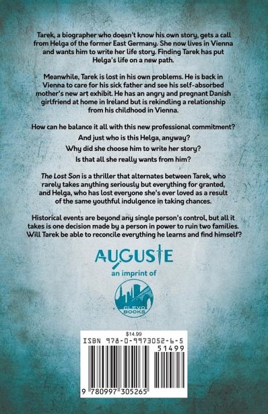 Tarek, a biographer who doesn't know his own story, gets a call from Helga of the former East Germany. She now lives in Vienna and wants him to write her life story. Finding Tarek has put Helga's life on a new path. Meanwhile, Tarek is lost in his own problems. He is back in Vienna to care for his sick father and see his self-absorbed mother's new art exhibit. He has an angry and pregnant Danish girlfriend at home in Ireland but is rekindling a relationship from his childhood in Vienna. How can he balance it all with this new professional commitment? And just who is this Helga, anyway? Why did she choose him to write her story? Is that all she really wants from him? The Lost Son is a thriller that alternates between Tarek, who rarely takes anything seriously but everything for granted, and Helga, who has lost everyone she's ever loved as a result of the same youthful indulgence in taking chances. Historical events are beyond any single person's control, but all it takes is one decision made by a person in power to ruin two families. Will Tarek be able to reconcile everything he learns and find himself?