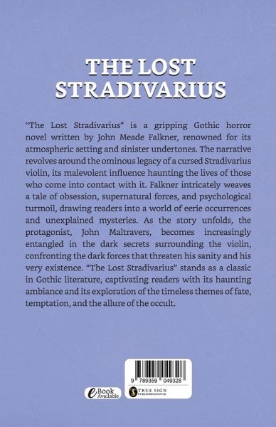 "The Lost Stradivarius" is a gripping Gothic horror novel written by John Meade Falkner, renowned for its atmospheric setting and sinister undertones. The narrative revolves around the ominous legacy of a cursed Stradivarius violin, its malevolent influence haunting the lives of those who come into contact with it. Falkner intricately weaves a tale of obsession, supernatural forces, and psychological turmoil, drawing readers into a world of eerie occurrences and unexplained mysteries. As the story unfolds, the protagonist, John Maltravers, becomes increasingly entangled in the dark secrets surrounding the violin, confronting the dark forces that threaten his sanity and his very existence. "The Lost Stradivarius" stands as a classic in Gothic literature, captivating readers with its haunting ambiance and its exploration of the timeless themes of fate, temptation, and the allure of the occult.