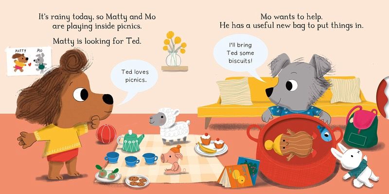 Giggle along with Matty and Mo in The Lost Teddy, a funny story for toddlers about learning to play together. With flaps, a wheel and a fold-out heart ending. Meet Matty and Mo - puppy siblings, and best friends too! Inspired by relatable, real-life family experiences, each story follows Matty and her little brother Mo as they navigate the ups and downs of preschool life, and learn how to get along. Sometimes being little can be tricky . . . but it always ends in giggles! In The Lost Teddy, Matty and Mo are playing rainy day picnics inside with all their toys. Matty is a bit sad when she can't find her favourite teddy, but luckily Mo has a useful new bag for taking on important missions. So off they set . . . Toddlers will love playing along with this interactive board book. With a simple story to keep little ones engaged, adorable illustrations from Rosalind Beardshaw, and a gentle lesson about being helpful and playing together. Plus a free audio recording available via QR!