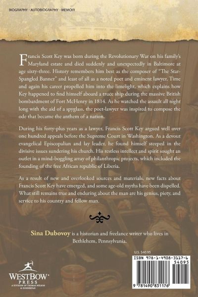 During his forty-plus years as a lawyer, Francis Scott Key argued well over one hundred appeals before the Supreme Court in Washington. As a devout evangelical Episcopalian and lay leader, he found himself steeped in the divisive issues sundering his church. His restless intellect and spirit sought an outlet in a mind-boggling array of philanthropic projects, which included the founding of the free African republic of Liberia. As a result of new and overlooked sources and materials, new facts about Francis Scott Key have emerged, and some age-old myths have been dispelled. What still remains true and enduring about the man are his genius, piety, and service to his country and fellow man.