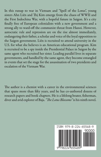 In this runup to war in Vietnam and "Spell of the Lotus", young sisters Ahn Liên and Th¿ Kim emerge from the chaos of WWII and the First Indochina War, with a hopeful future in Saigon. It's a city finally free of European colonialists with a new government and a strong ally to ward-off the communist threat from Hanoi. However, autocratic rule and repression are on the rise almost immediately, endangering their father, a scholar and voice of the loyal opposition to the Saigon government. Liên is recruited to attend university in the U.S. for what she believes is an American educational program. Kim is recruited to be a spy inside the Presidential Palace in Saigon by the same agent who recruited her sister. Leading parallel lives in separate governments, and handled by the same agent, they become entangled in events that set the stage for the assassination of two presidents and escalation of the Vietnam War.