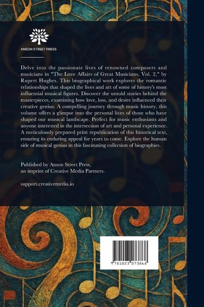 Delve into the passionate lives of renowned composers and musicians in "The Love Affairs of Great Musicians, Vol. 2," by Rupert Hughes. This biographical work explores the romantic relationships that shaped the lives and art of some of history's most influential musical figures. Discover the untold stories behind the masterpieces, examining how love, loss, and desire influenced their creative genius. A compelling journey through music history, this volume offers a glimpse into the personal lives of those who have shaped our musical landscape. Perfect for music enthusiasts and anyone interested in the intersection of art and personal experience. A meticulously prepared print republication of this historical text, ensuring its enduring appeal for years to come. Explore the human side of musical genius in this fascinating collection of biographies. This work has been selected by scholars as being culturally important, and is part of the knowledge base of civilization as we know it. This work is in the public domain in the United States of America, and possibly other nations. Within the United States, you may freely copy and distribute this work, as no entity (individual or corporate) has a copyright on the body of the work. Scholars believe, and we concur, that this work is important enough to be preserved, reproduced, and made generally available to the public. We appreciate your support of the preservation process, and thank you for being an important part of keeping this knowledge alive and relevant.