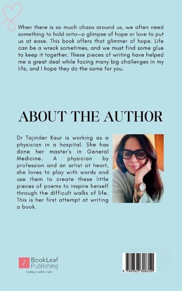When there is so much chaos going on around us, we always need something to hold on, to go through that chaos, and even a little glimpse of hope, of love can put us at ease.This book is just about that little glimpse. Life can be wreck sometimes and we have to find some glue to keep it together. These pieces of writing has helped me to a great deal in going through a lot of big challenges in my life and I hope it does the same for you.