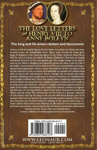 The king and his wives-letters and documents History is full of notable figures, but far fewer in number are those who have become iconic. An indisputably iconic figure, even among the many great kings of England, is the towering figure of the Tudor monarch, King Henry VIII. He was, of course, the father of Queen Elizabeth I, Gloriana, an equally renowned monarch of her own golden age. She sought always to be and be seen as her father's daughter, but posterity preserves what it will of a life in the public consciousness and so aside from Henry's unmistakable and imposing personal appearance what is most remembered of him by many is that he was married on six occasions and habitually terminated his relationships with an axe at the executioner's block-though this occurred only twice perhaps indicating more moderation in Henry's character as a husband than he is usually credited with. There has always been something seductively attractive about this powerful man, capable of great tenderness and romance, an artist, poet and musician-and yet a ruthless and unscrupulous tyrant capable of incredible insensitivity and cruelty. This volume contains an engrossing selection of correspondence, reports and other documents concerning Henry and his wives. The central part of the book is a famous collection of love letters sent by the king to his second wife Anne Boleyn, one of his spouses who lost her head to be superceded by another beauty of the court Jane Seymour, one of Anne's ladies in waiting. In this special and unique Leonaur edition these letters are added to by the inclusion of correspondence and other documents concerning the fate of Henry's sometimes unfortunate women and the events that surrounded them. Leonaur editions are newly typeset and are not facsimiles; each title is available in softcover and hardback with dustjacket.