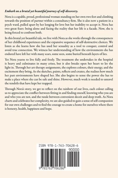 Embark on a brutal yet beautiful journey of self-discovery. Nora is a capable, proud, professional woman standing on her own two feet and climbing towards the position of partner within a consultancy firm. She is also now a patient in a psych ward, pulled apart by her longing for love but her inability to accept it. Nora has two great fears: being alone and facing the reality that her life is a facade. Now, she is being forced to confront both. In this brutal yet beautiful tale, we live with Nora as she works through the consequences of her childhood experiences and the expansive sequence of self-destructive choices. We listen as she learns how she has used her sexuality as a tool to conquer, control and avoid true connection. We witness her understanding of how the environments she has endured have left her with many scars, some seen, some buried beneath layers of lies. Yet Nora yearns to live fully and freely. The treatment she undertakes in the hospital is heavy and culminates in many crises, but it also breaks open her heart to let the light in. Through her art therapy assignments, she explores colours, their energy, and the excitement they bring. As she sketches, paints, reflects and creates, she realises how much her past environments have shaped her. She also begins to sense the power she has to make a place where she can be safe and shine. However, much work is needed to unravel the tendrils that have kept her trapped. Through Nora's story, we get to reflect on the rainbow of our lives, each colour calling us to appreciate the conflict between fitting in and finding oneself, knowing who you are and who you are not, and the tussle between convenient deceit and deep truth. As Nora charts and celebrates her complexity, we are also guided to gain a sense of self-compassion for our own challenges and to find the courage to create a home for ourselves where there is honesty, health, happiness and hope.
