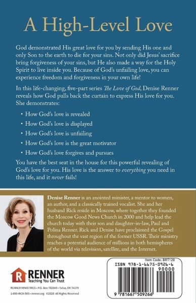 A High-Level Love God demonstrated His great love for you by sending His one and only Son to the earth to die for your sins. Not only did Jesus' sacrifice bring forgiveness of your sins, but He also made a way for the Holy Spirit to live inside you. Because of God's unfailing love, you can experience freedom and forgiveness in your own life! In this life-changing, five-part series The Love of God, Denise Renner reveals how God pulls back the curtain to express His love for you. She demonstrates: How God's love is revealed How God's love is displayed How God's love is unfailing How God's love is the great motivator How God's love forgives and pursues You have the best seat in the house for this powerful revealing of God's love for you. His love is the answer to everything you need in this life, and it never fails!