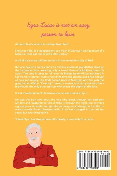Ezra Lucas is not an easy person to love. At least, that's what she's always been told. She's too cold, too independent, too much of a know-it-all, too much of a Medusa. That last one is still a little unclear. A blind date once told her to burn in the seven fiery pits of Hell. But one day Ezra comes home to find her maternal grandfather dead on the bathroom floor wearing only a towel that-thankfully-covers his waist. The time it takes to roll over his lifeless body will be ingrained in her memory forever. That's around the time she decides she's had enough of pain and misery. She finds herself back in Montreal with her paternal grandfather, Walter "Cowboy" Brown, a take-no-shit army vet who has a big mouth, the only other person who knows the depth of this loss. It's at a celebration of life where she runs into Tobias Flynn. He was the boy next door, the one who snuck through her bedroom window and reassured her she'd make it through the night. But now he's a grumpy-and hateful and spiteful and sexy-man straight out of the romance novels Ezra's obsessed with. A lot has changed in the last ten years, but one thing hasn't. Tobias Flynn has always been effortlessly in love with Ezra Lucas.