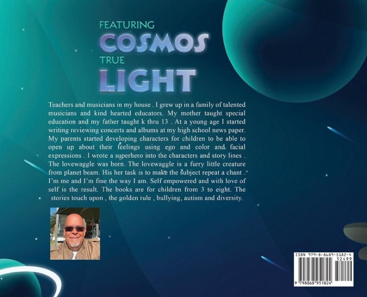 Childrens books where the superhero "Beam" the Lovewaggle is dispatched from Cosmos Truelight the wise ole owl who lives on planet Beam, to join good Samaritan's and Light helpers Handy Candy who is "moms helper "and is Cosmos favorite light helper, and other light helpers such as Dan the park ranger and together solve the conflict here on earth.