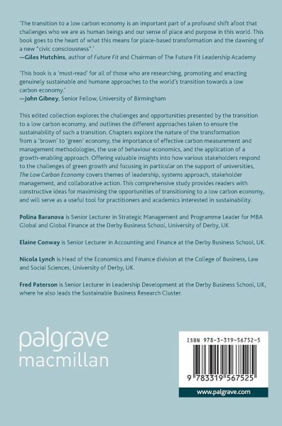 This edited collection explores the challenges and opportunities presented by the transition to a low carbon economy, and outlines the different approaches taken to ensure the sustainability of such a transition. Chapters explore the nature of the transformation from a 'brown' to 'green' economy, the importance of effective carbon measurement and management methodologies, the use of behaviour economics, and the application of a growth-enabling approach. Offering valuable insights into how various stakeholders respond to the challenges of green growth and focusing in particular on the support of universities, The Low Carbon Economy covers themes of leadership, systems approach, stakeholder management, and collaborative action. This comprehensive study provides readers with constructive ideas for maximising the opportunities of transitioning to a low carbon economy, and will serve as a useful tool for practitioners and academics interested in sustainability.