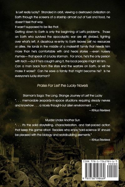 Is Leif really lucky?Stranded in orbit, viewing a destroyed civilization on Earth through the screens of a starship almost out of fuel and food, he doesn't feel that way. It wasn't supposed to be like that. As the starship Dauntless returns from a successful mission to the planet called Heaven, Earth holds no attractions for Exoplanetary Scout Leif Grettison. He wants only to complete the mission and leave for another star, along with ace pilot Yang Yong. In fact, he would be happy spending the rest of his life flying the starways with her. But they and the rest of the ship's skeleton crew awaken from hibernation to find Earth's solar system dark and silent-no signals, no responses to their transmissions. When they make orbit, the magnitude of the disaster becomes clear: An apocalyptic war has killed billions and destroyed every last source of power and tech that 22nd-Century humans relied on to survive. Getting down to Earth is only the beginning of Leif's problems. Those few who survived the apocalypse are still divided, fighting over what's left. The disastrous re-entry to Earth leaves him with no resources or allies. He lands in the middle of a makeshift family that needs him more than he's comfortable with and hears stories-even nursery rhymes-that speak of a lucky starman. For once, he's the only person with tech-but if he's caught using it, they might kill him. Can a man back from the stars end the warfare on Earth, or will he make it worse? Can he save a family that might become his? Is he everyone's lucky starman?